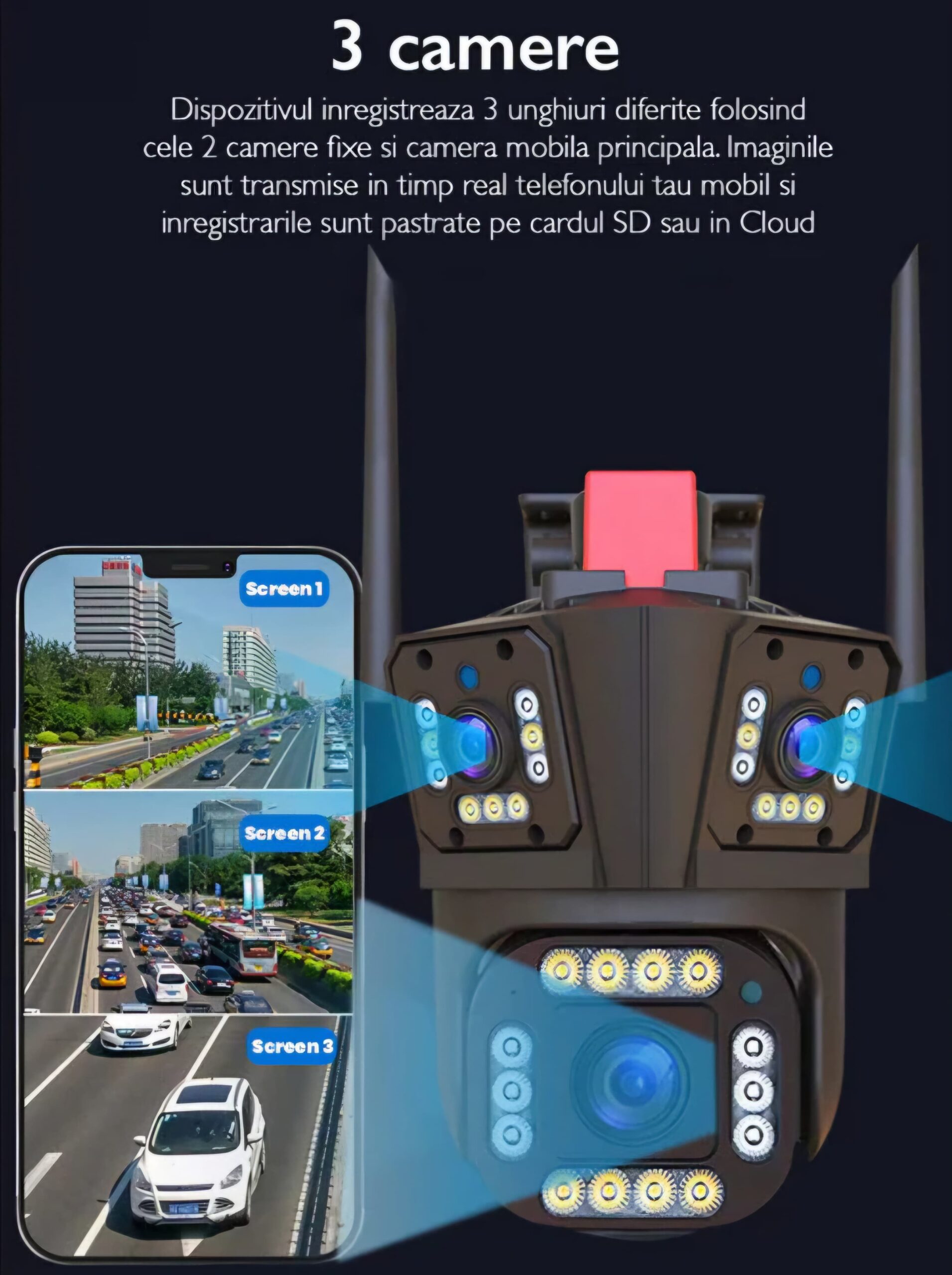 -Camera tripla (2 camere fixe si o o camera mobila)