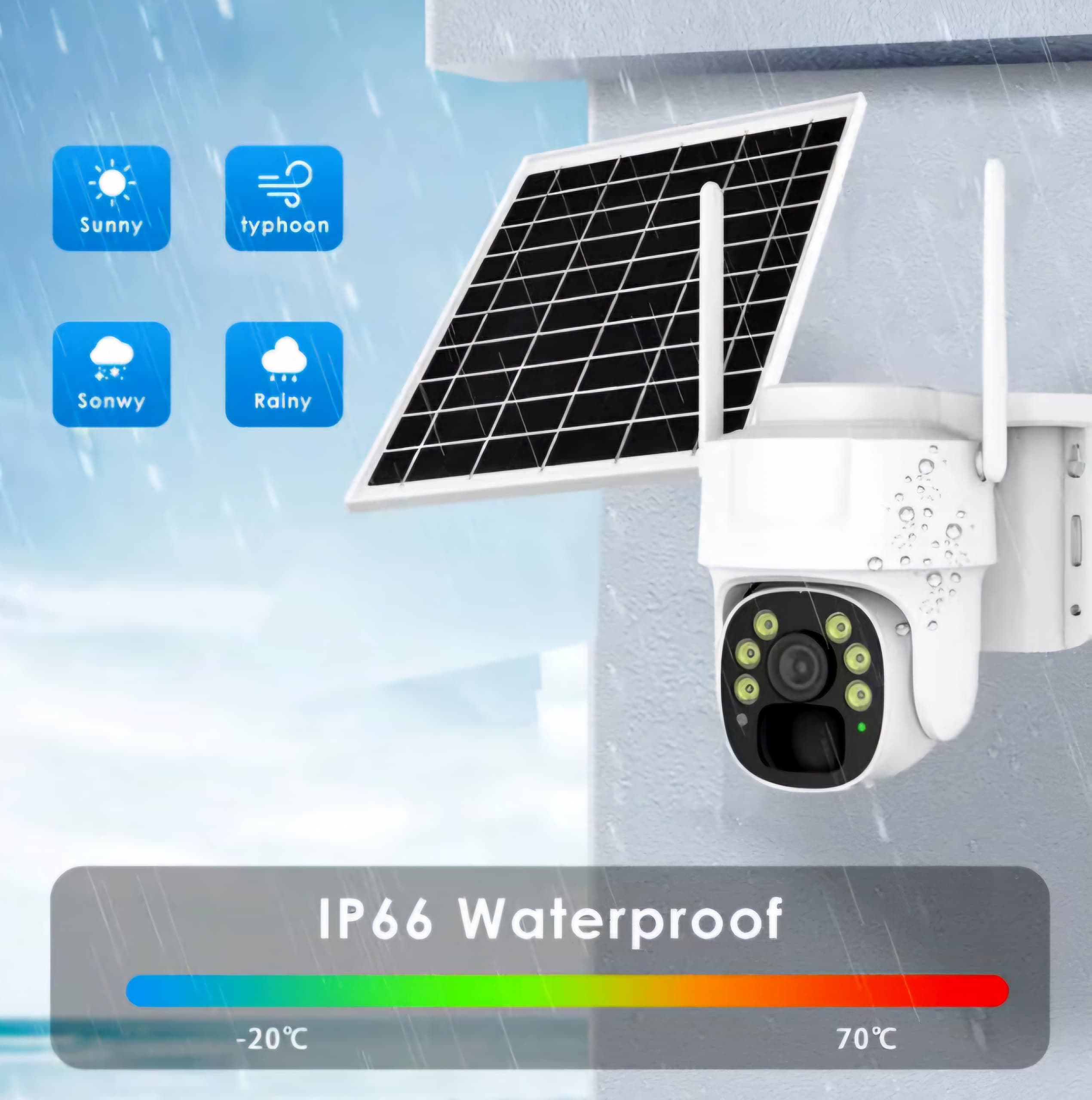 -Mediu de lucru: IP66 Rezistent la apa, poate fi folosit in interior si exterior