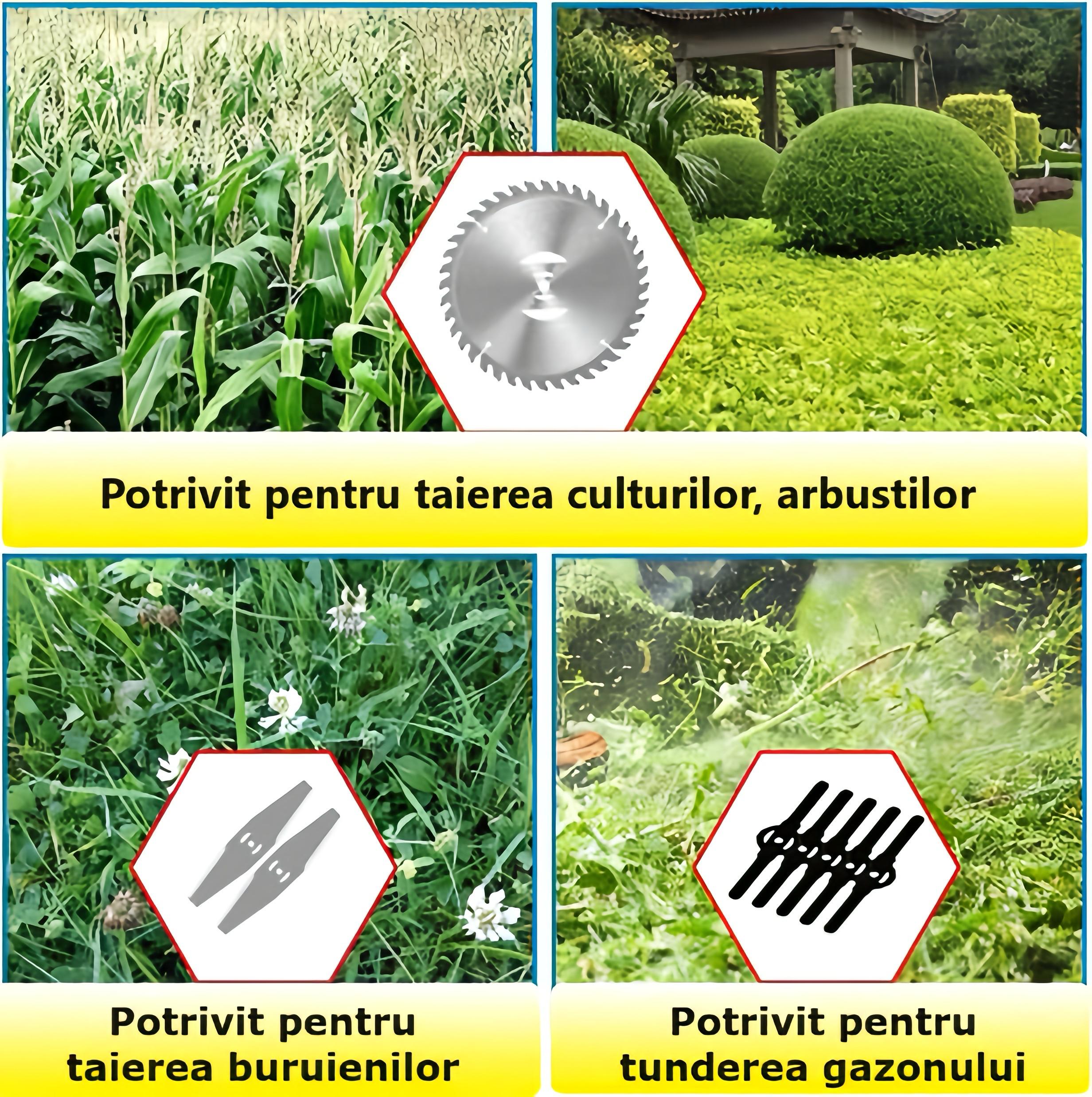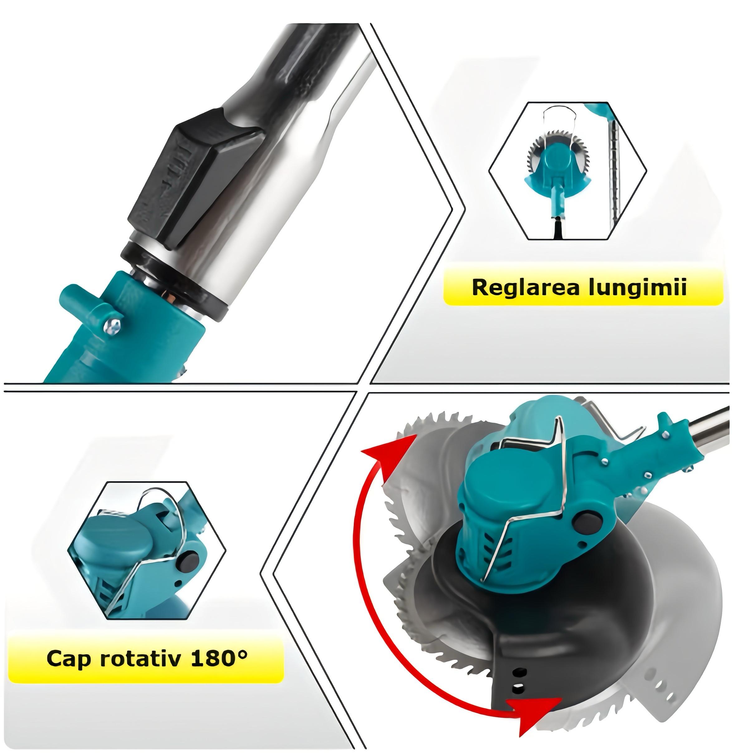Motocoasă Electrică, Trimmer cu 3 moduri de tăiere pentru iarbă/gazon, braţ ajustabil, 2 acumulatori, 36V, 1.000W, 18.000 RPM.